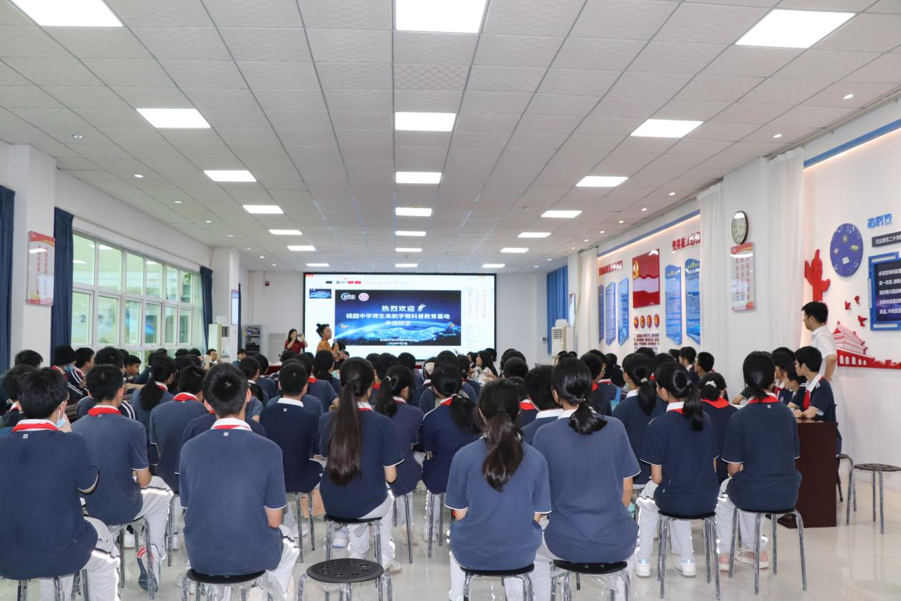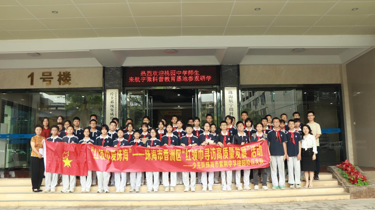 在第九个中国航天日来临之际,为弘扬中国航天精神,培养青少年科学探索意识和爱国情怀,4月19日下午,珠海市紫荆中学桃园校区(以下简称“珠海市桃园中学”)师生一行约90人在邱艺施副校长的带领下走进航宇微科普教育基地,开启了一场“探索太空·强国筑梦”的主题研学活动。通过参观航宇微公司展厅、航天主题讲座与交流等环节,向学生们普及现代航空航天的知识,激发同学们的学习热情,点燃少年航天强国梦。