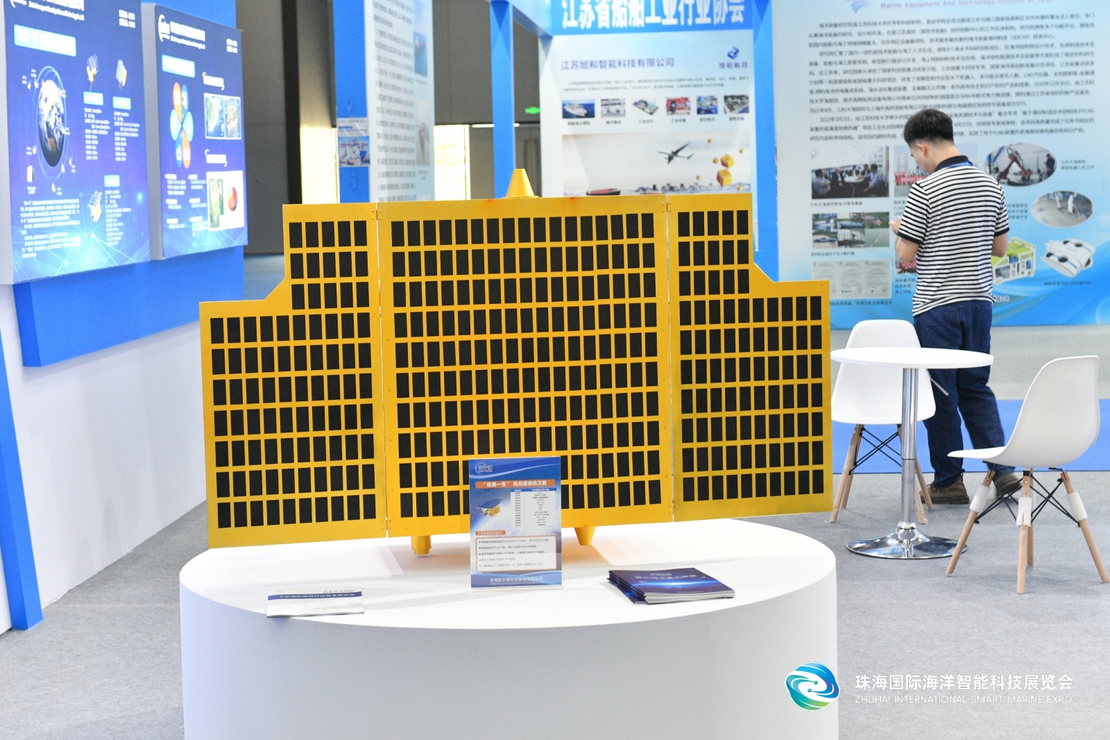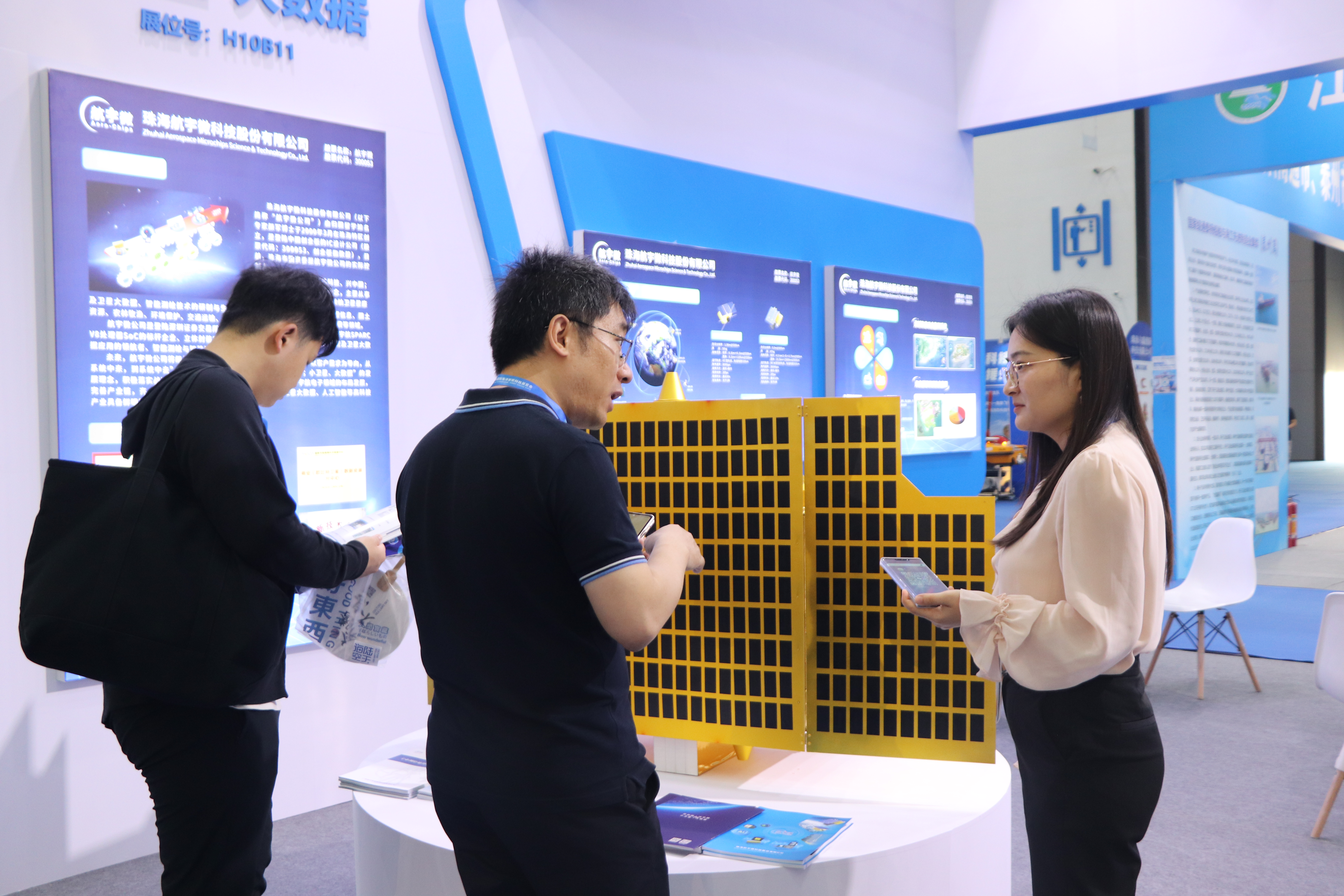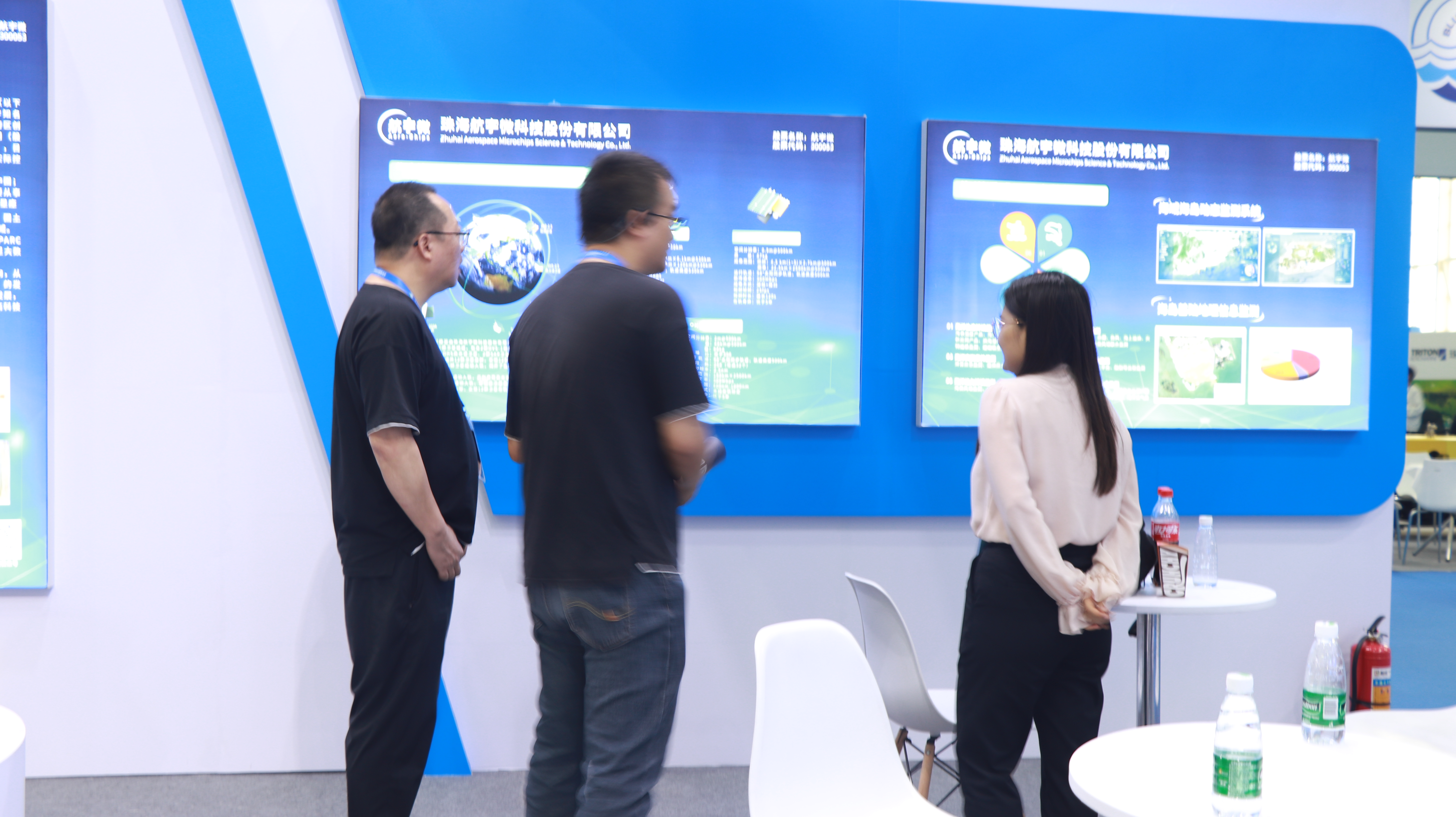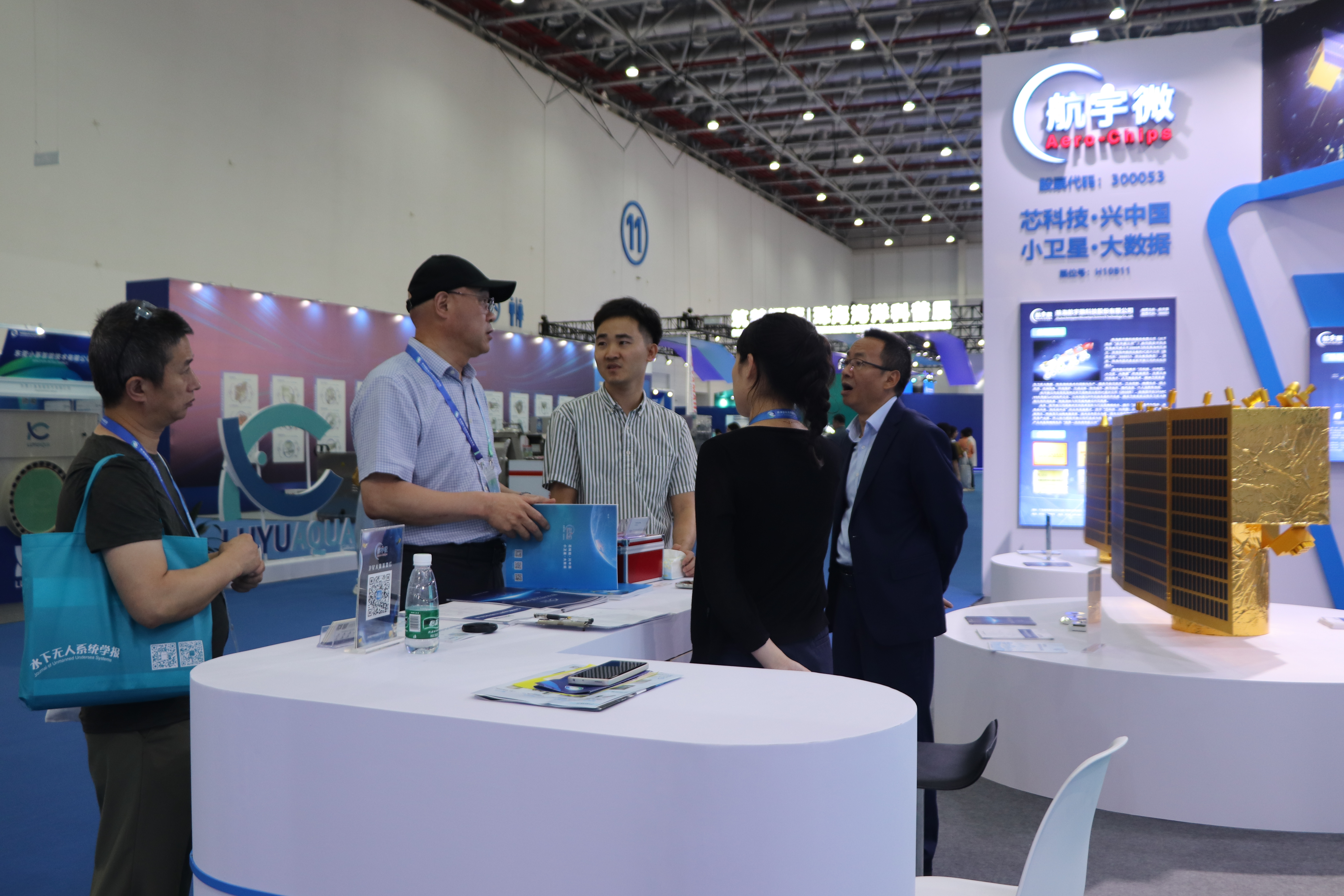 展会期间,现场通过宣传视频、详实的产品应用及解决方案海报、芯片实物和精致的卫星模型等形式,全方位多维度地为新老朋友展示航宇微在海洋监测方面的主要成果和先进技术。公司领导及工作人员驻守展位,向每一位走进航宇微展位的参观者详细耐心地讲解了公司各大业务板块信息,重点介绍了公司在商业遥感领域所取得的成果,特别是卫星大数据在海洋环境监测等领域的应用。通过聆听讲解,参观者们对公司产品和服务展现出了浓厚的兴趣和极高的关注度。