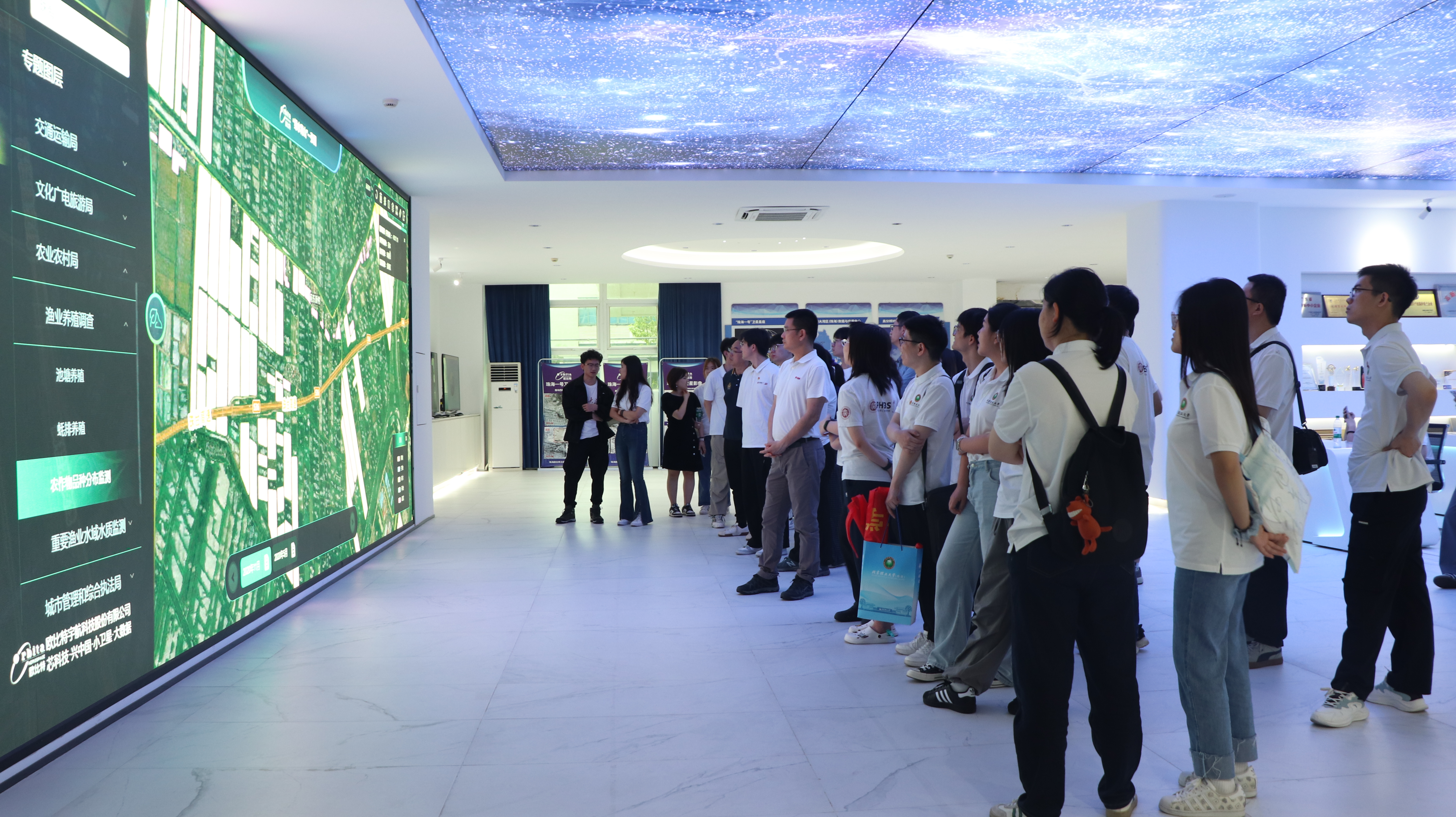 在航宇微企划品牌部经理周娜的带领下,师生们首先参观了公司展厅。通过近距离观察“珠海一号”卫星模型、卫星运行轨道演示及遥感影像展示,大家深入了解了航宇微在商业航天领域的卓越成就。特别是在宇航电子和人工智能展区,师生们对国产化航天芯片的研发历程和关键技术突破赞叹不已,深刻体会到科技创新对国家发展的战略意义。