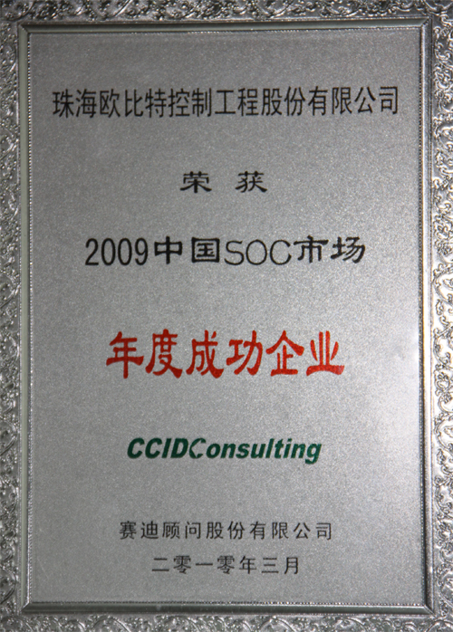 作为2010年半导体领域最为重要的年度会议“2010中国半导体市场年会(IC Market China 2010)”于3月9日-10日在上海张江举行。在本次年会上珠海欧比特荣获“2009中国SOC市场年度成功企业” 称号和“2009中国SIP市场年度创新企业”称号。