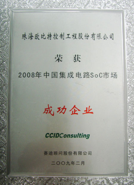 2009年2月25日,在上海如期举行的“2009中国半导体市场年会”上,珠海欧比特控制工程股份有限公司被评为“200年中国集成电路SoC市场成功企业”。