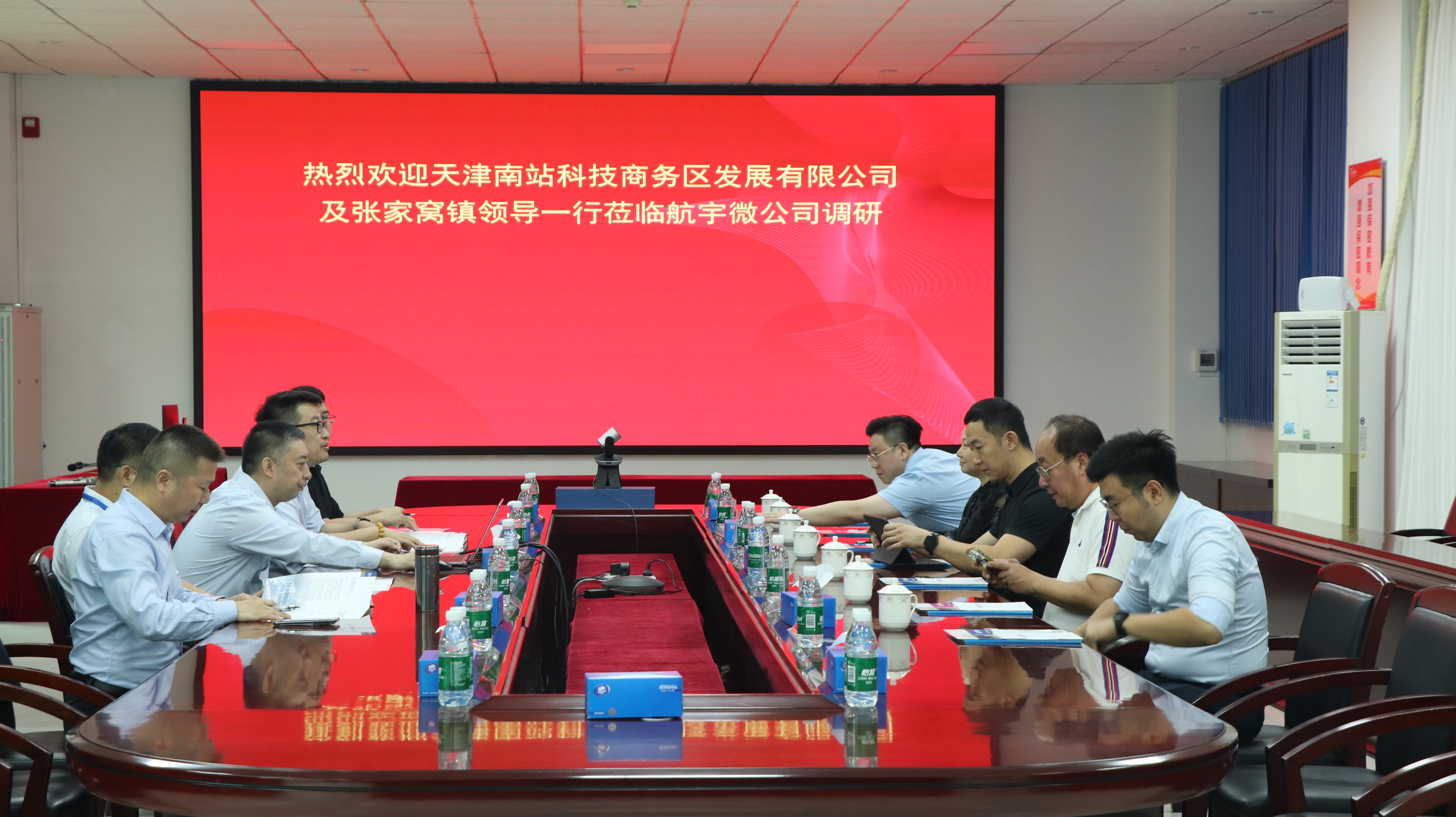 天津南站科技商务区发展有限公司曹征总经理及张家窝镇王建培调研员一行莅临航宇微调研