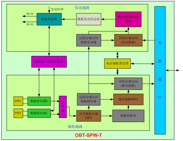 OBT-SPW-T是公司自主研制的遵循ECSS-E-ST-50-12C协议规范的航天设备间的高速数据总线的节点IP核。