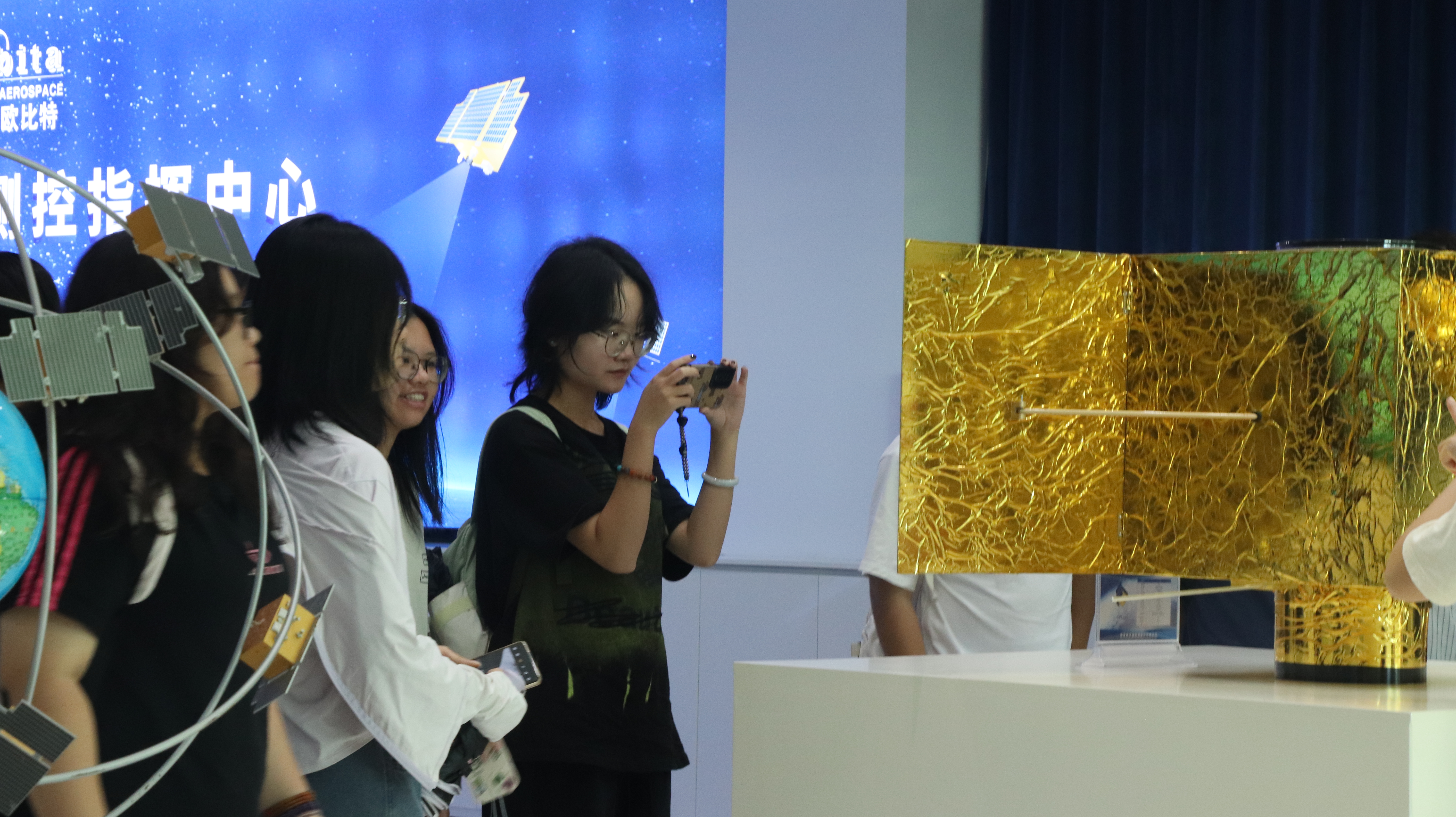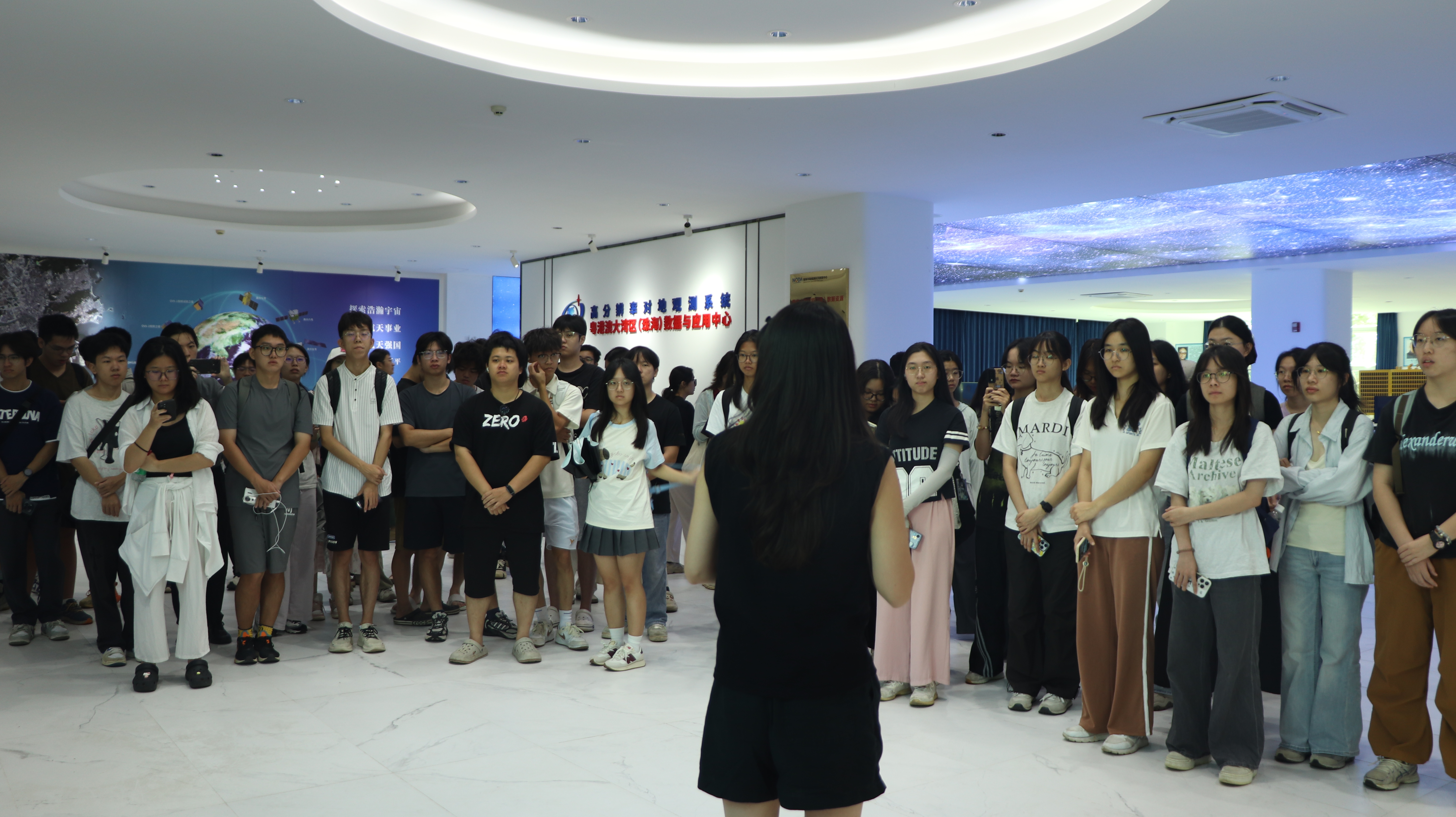 研学活动开始,师生们参观了航宇微公司的卫星大数据展厅,接待人员为大家系统讲解了“珠海一号”遥感微纳卫星星座的发射历程,以及卫星数据获取、处理与应用的完整流程,全面呈现了公司在卫星大数据业务方面的领先技术与广泛实践。公司接待人员热情地向师生们介绍了遥感技术在国土资源、生态环保、智慧城市、农业农村等多个领域的实际应用情况,师生们深入了解到遥感卫星技术的强大功能与广阔前景。
